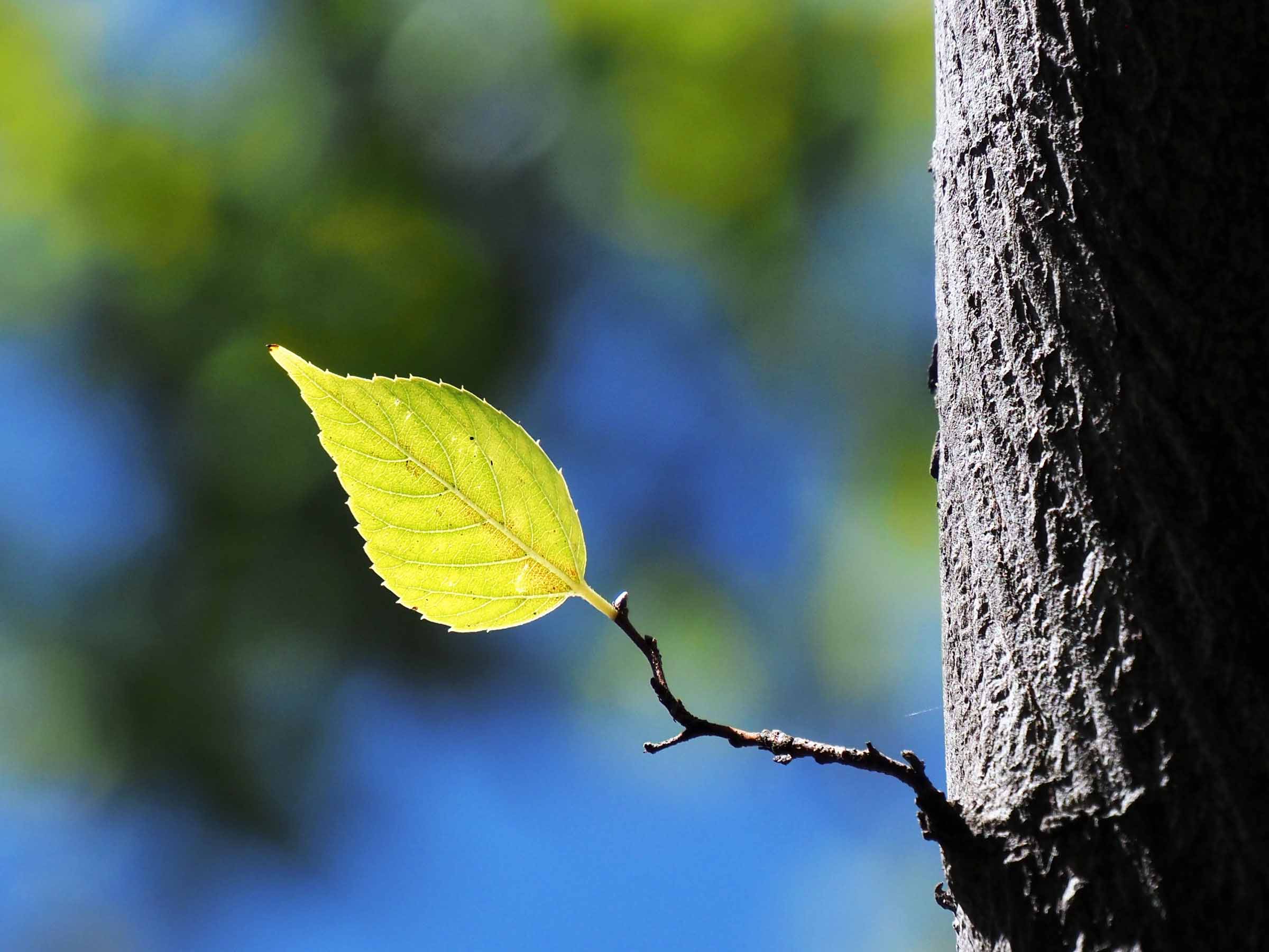 中川公園のシダレザクラの葉についた