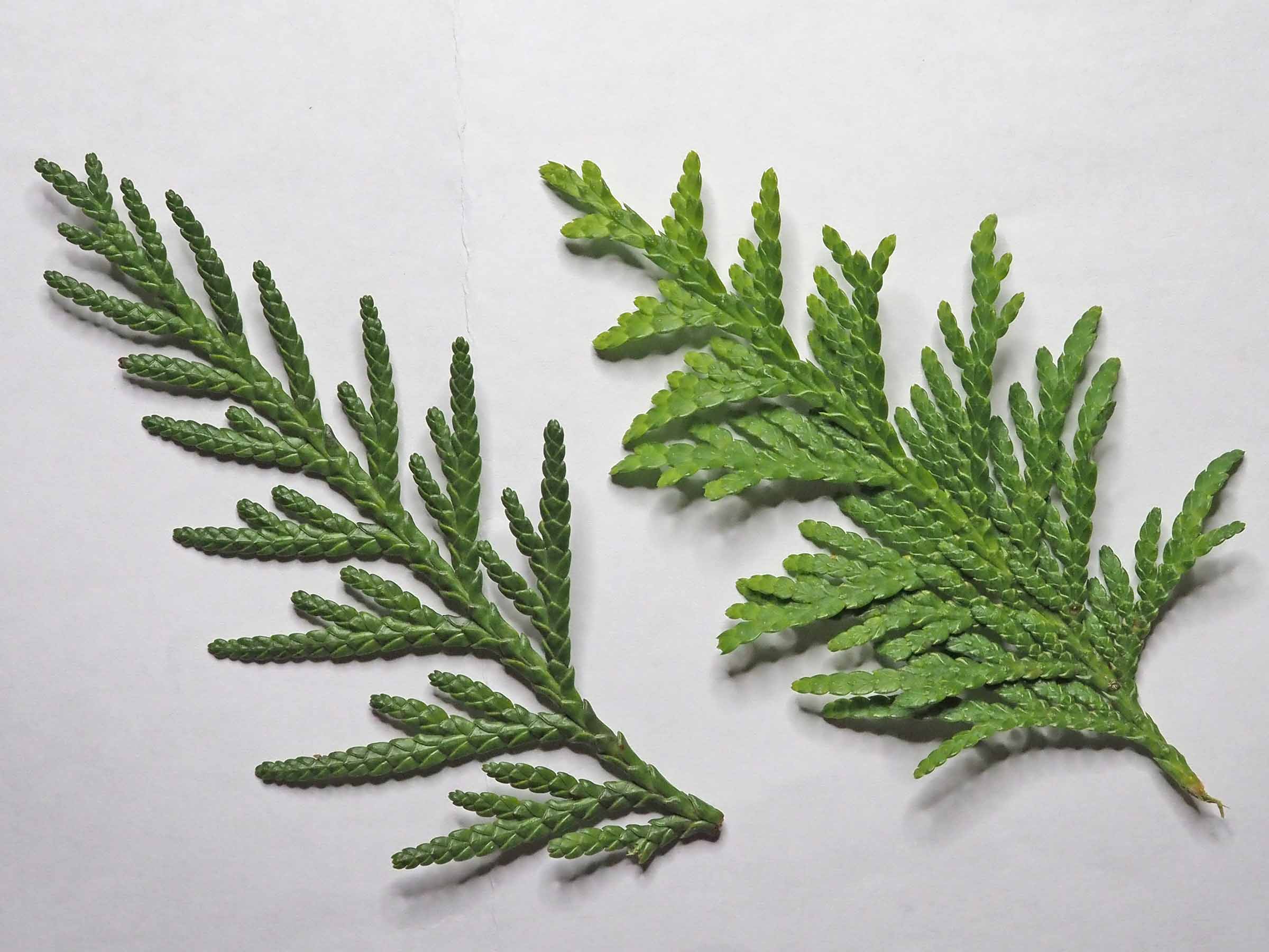 ネズコ(左)とニオイヒバ(右)