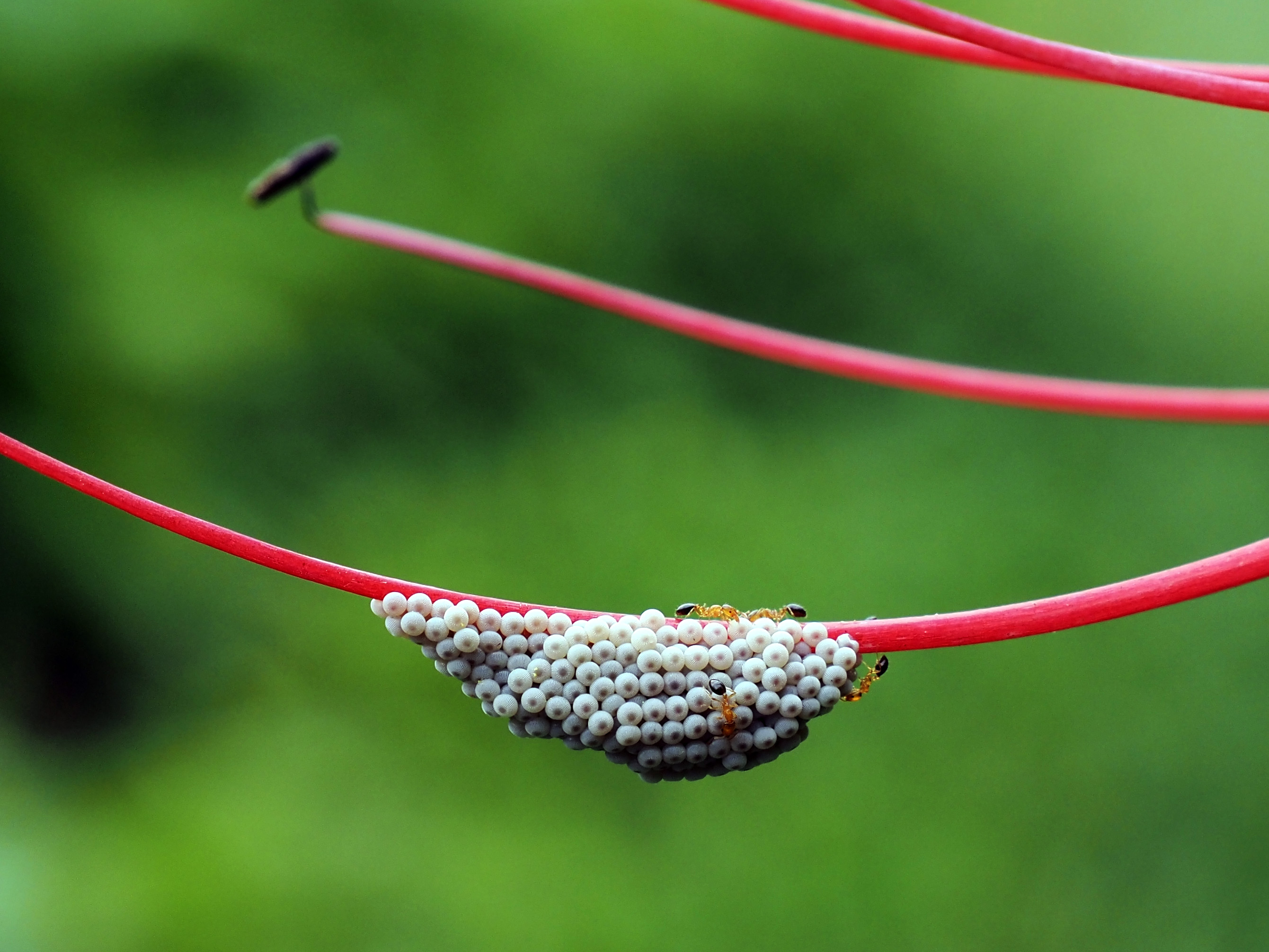 ヒガンバナについた何かの卵とアリ