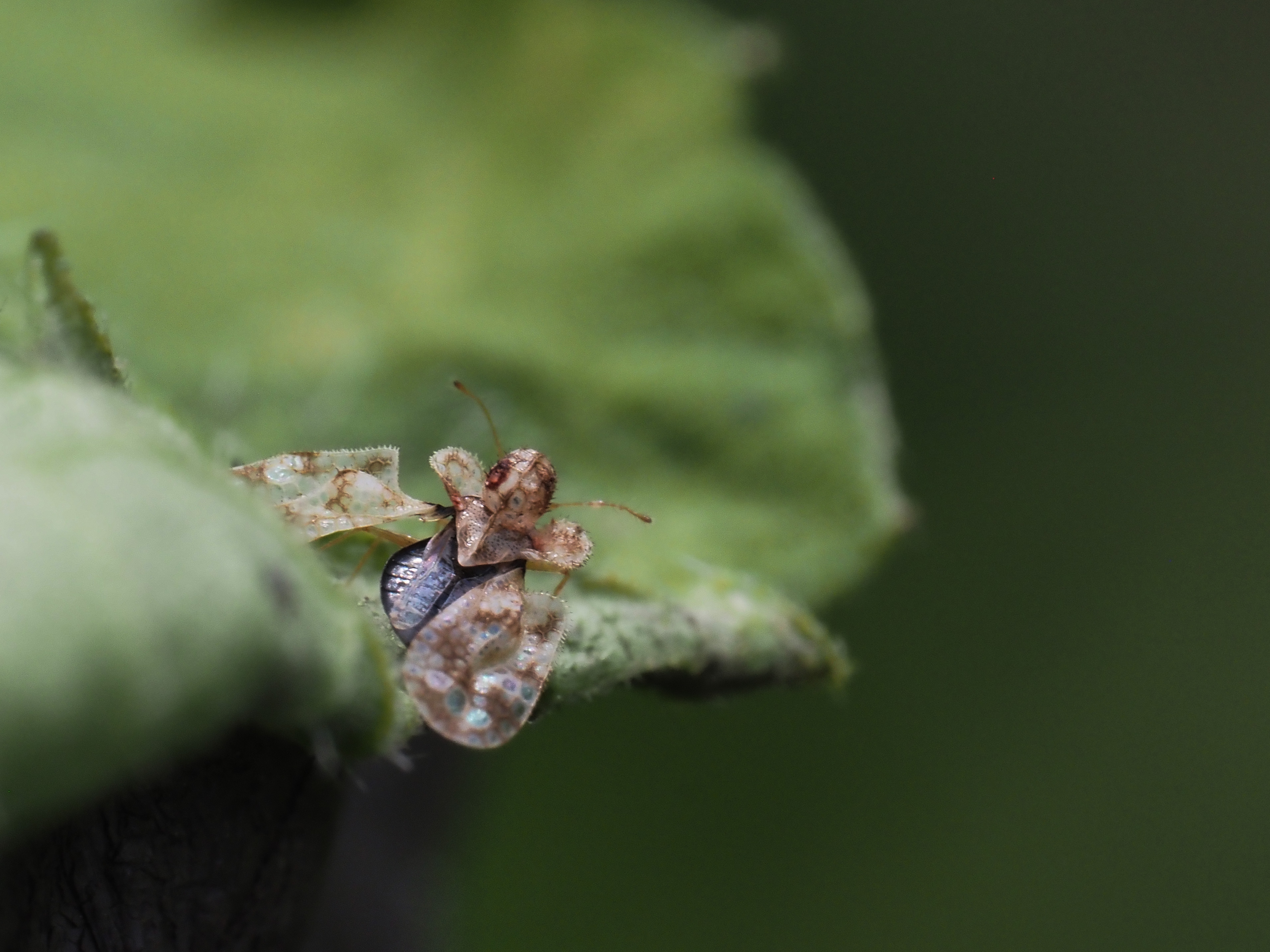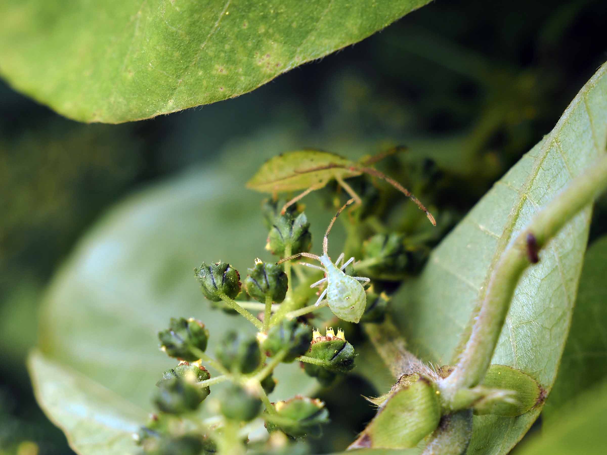 カナムグラにつくヒメジュウジナガカメムシ