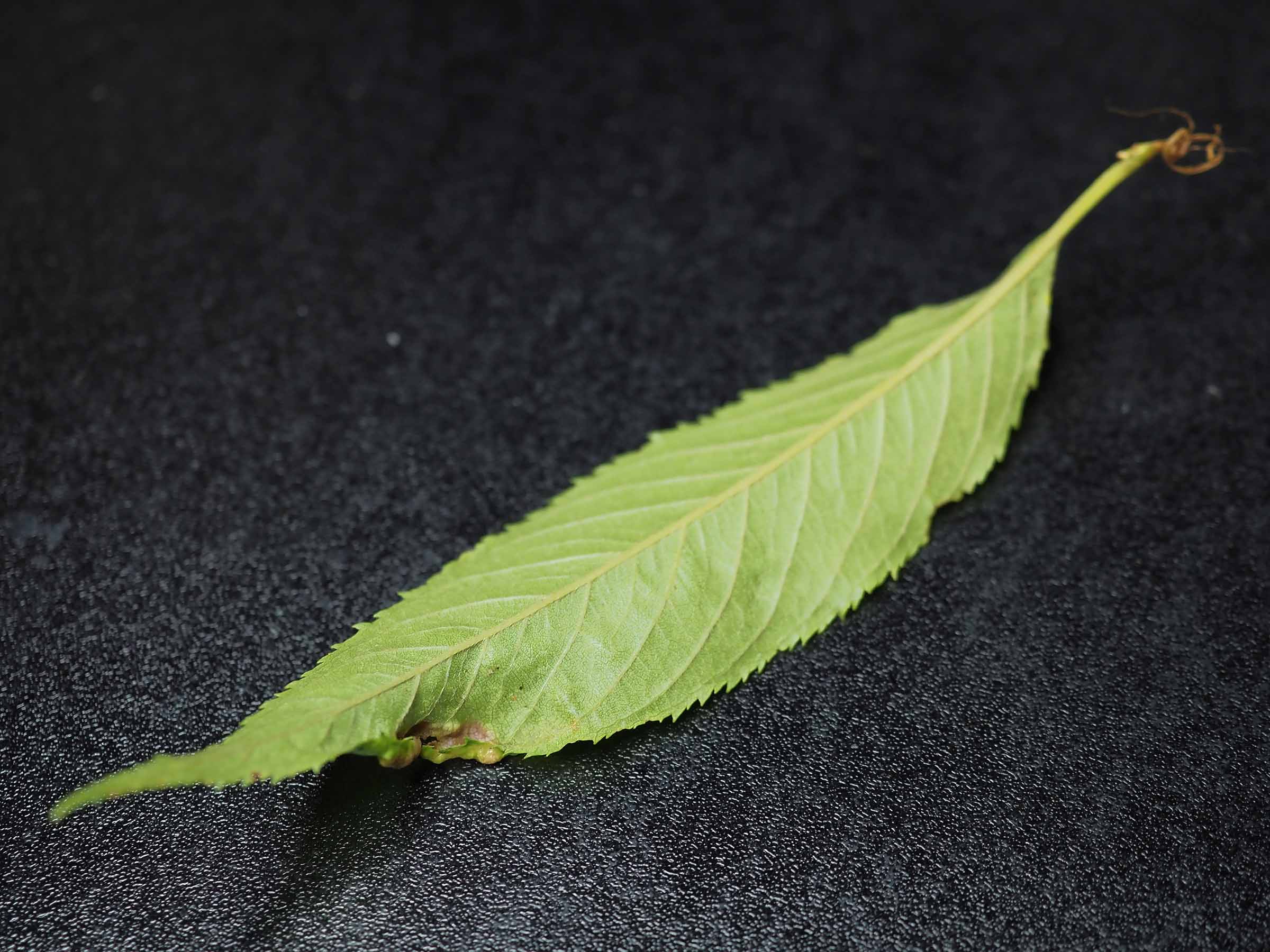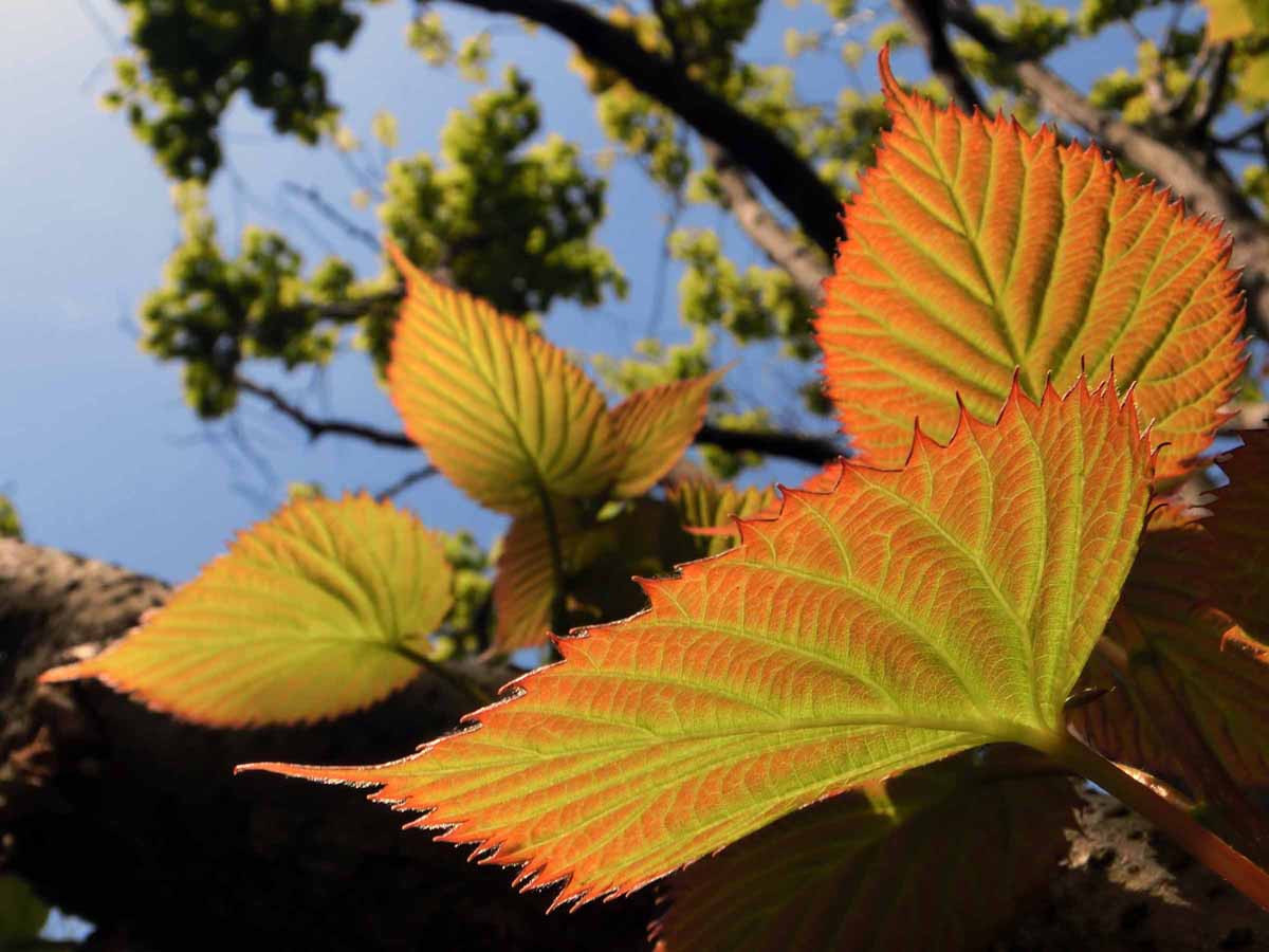 中川公園のシダレザクラの葉についた
