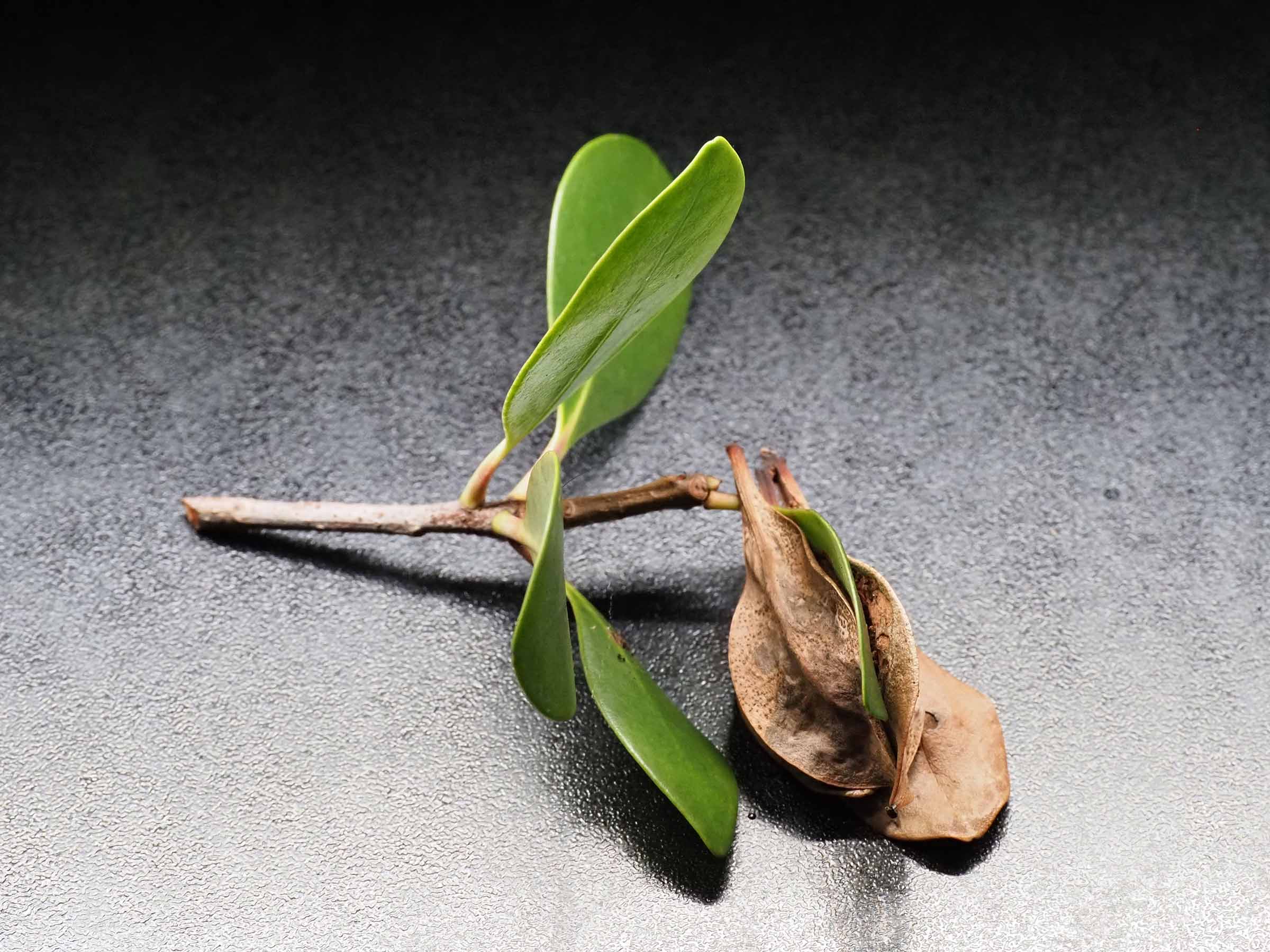 東綾瀬公園で拾ったマテバシイの葉っぱ 表
