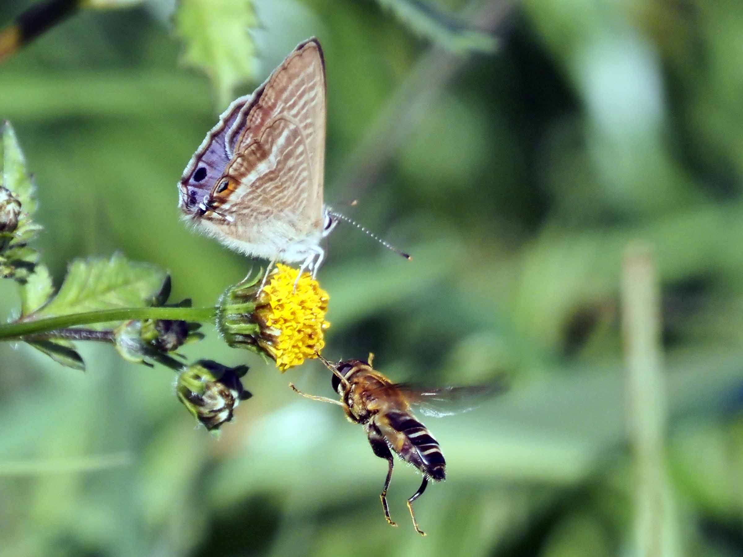 ウラナミシジミとアシブトハナバチ