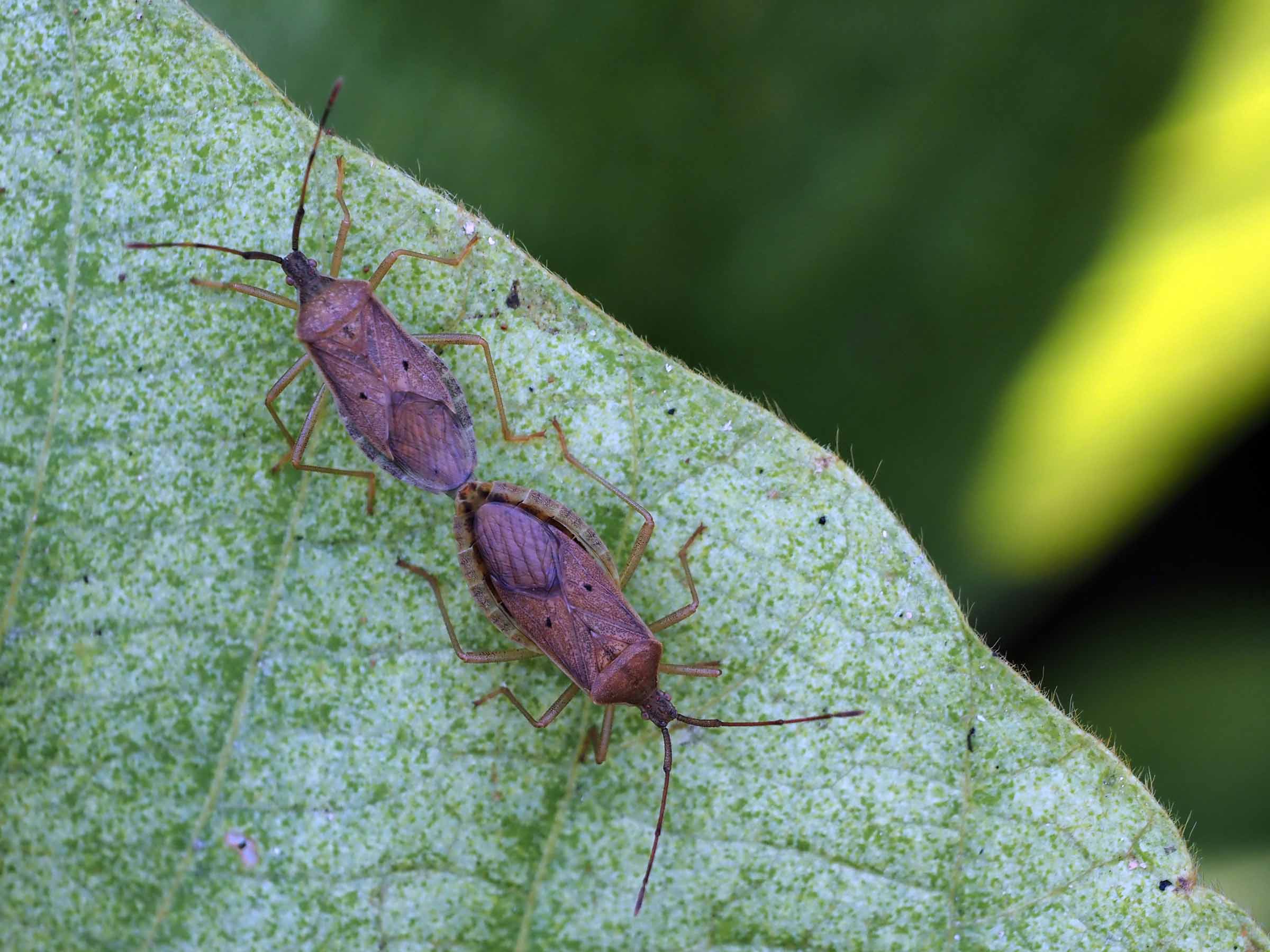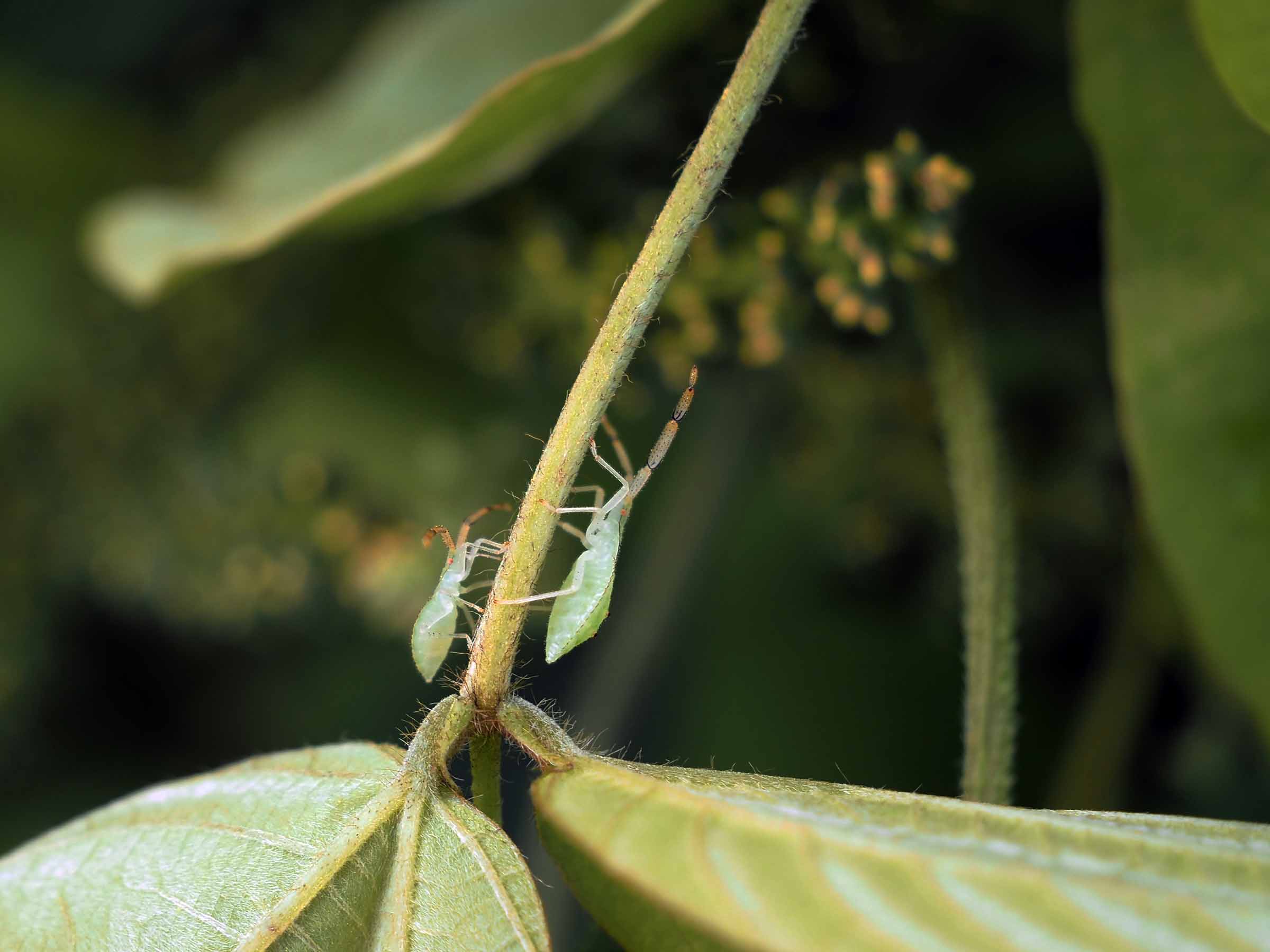 カナムグラにつくヒメジュウジナガカメムシ